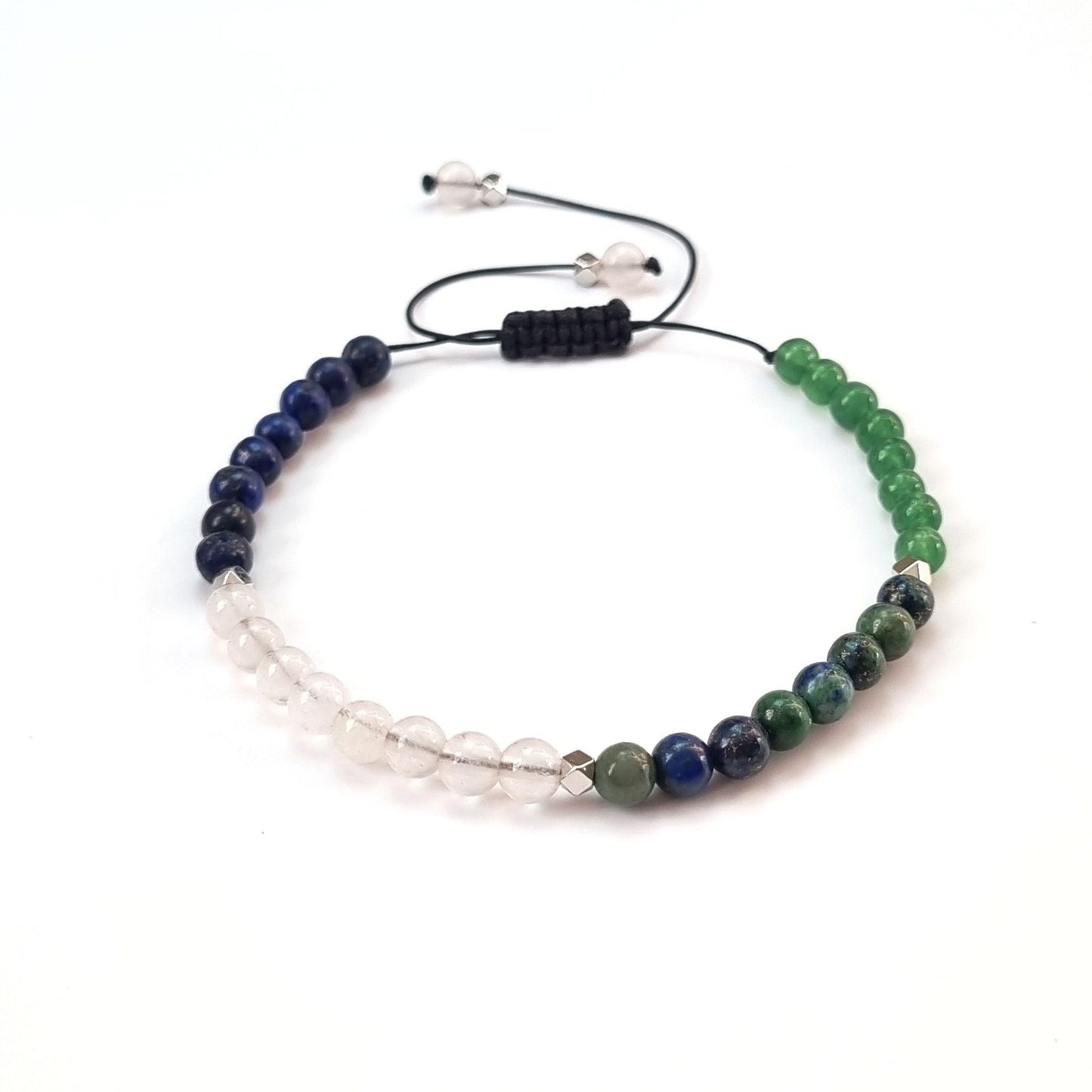 - Pulsera de cuentas de Lapislázuli, Cuarzo Rosa, Azurita y Jaspe Verde de 3mm.