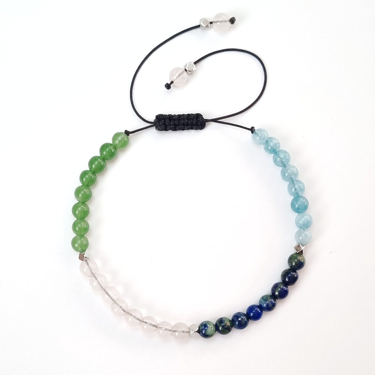 Pulsera del Zodiaco Tauro: Jaspe Verde, Cuarzo Rosa, Azurita y Aguamarina